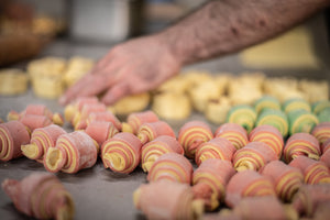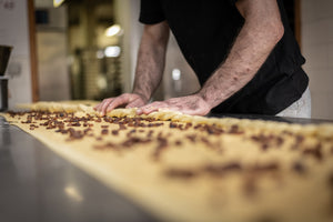 La particolare cura della selezione degli ingredienti, utilizzando solamente farine scelte, un proprio lievito madre, burro di altissima qualità, uova fresche, frutta candita rigorosamente dalle nostre mani esperte e le segrete ricette gelosamente custodite dal nostro Maestro Pasticciere.